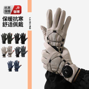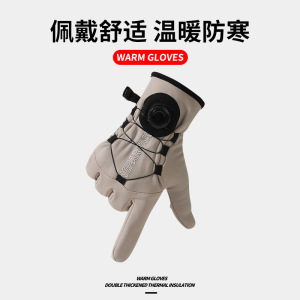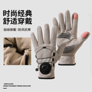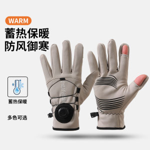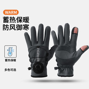 秋冬季骑行手套男士旋钮可调节加绒防风防水触屏运动防滑保暖手套