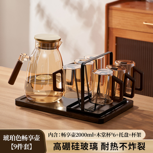 【琥珀色】畅享壶2000ml+6木棠杯+杯架+托盘