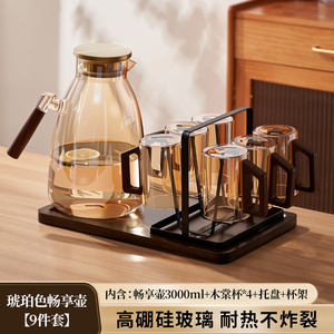 【琥珀色】畅享壶3000ml+6木棠杯+杯架+托盘