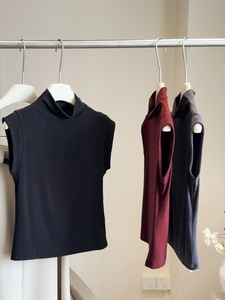 2025 初秋の新無地ハーフタートルネックフライングスリーブ弾性ソフトワックス状インナーレイヤリングシャツ Tシャツトップス卸売
