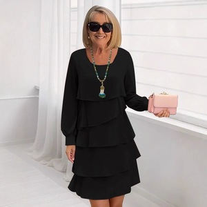 2025 アマゾン貿易秋のファッションケーキスカート女性の気質ルーズスリムラウンドネック長袖ドレス女性