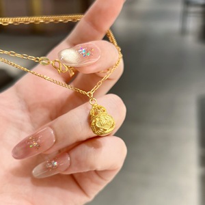 S925纯银镀24K金好事发生花生套链镂空花丝工艺新中式国风批发