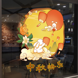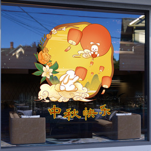 ハッピー中秋節のお祭りの雰囲気静電ステッカーバルーン翡翠ウサギランタンショッピングモールの窓の装飾アレンジメントガラスドアステッカー