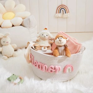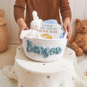 Etsy 亚马逊个性化名字婴儿收纳篮 棉绳收纳宠物儿童收纳筐编织篮