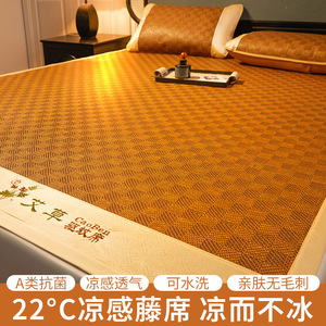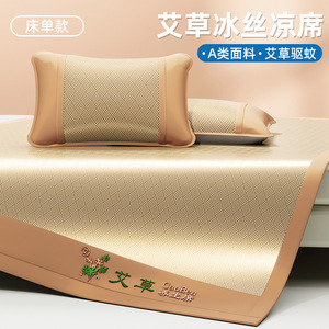 加厚艾草双面藤席冰丝凉席三件套竹草席学生双人空调席可折叠