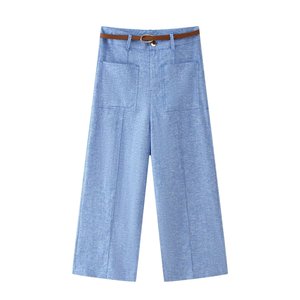 PB&ZA レディース 2025 秋新作 リネン ダブルブレスト ベスト 8189757 + ベルト ワイドレッグ パンツ 8044757