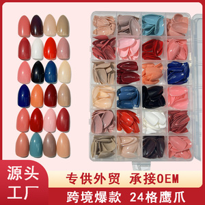 Amazonの人気の24グリッドイーグルクロー長先端取り外し可能なパッチウェアラブルマニキュアソリッドカラークロスボーダー完成フェイクネイル