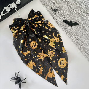 跨境万圣节蝴蝶结飘带弹簧夹发饰烫印网纱南瓜蝙蝠节日装饰头饰