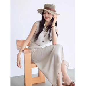显瘦斜丝版可脱卸腰带连衣裙2025夏装新款休闲裙子1G6993851