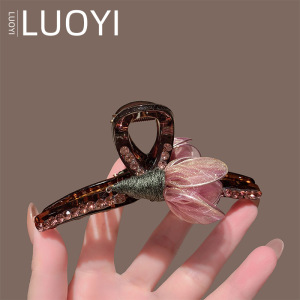 2025新款洋气花朵镶钻氛围抓夹女高级感后脑勺全盘发抓鲨鱼夹头饰