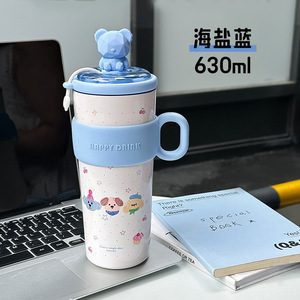 小茶日记316不锈钢手柄冰霸杯卡通高颜值保温杯户外便携式吸管杯