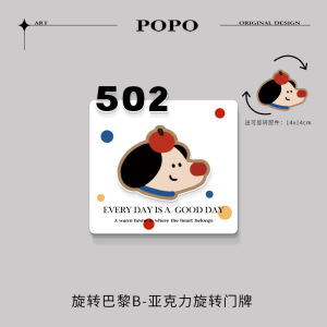 ~我家小狗B-亚克力转轴门牌Y_18X18CM(中间图案可定制可转!)-门牌号需备注