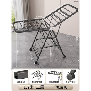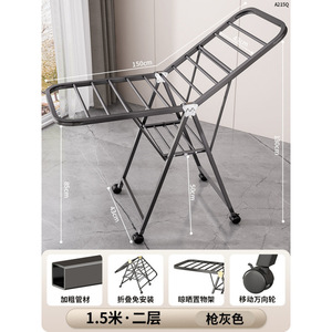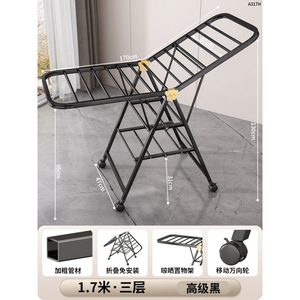 可折叠晾衣架台落地家用卧室碳钢晒衣架多凉晒挂衣杆晒被子
