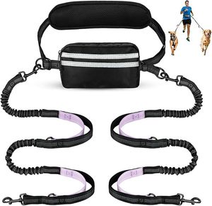 亚马逊热卖一拖二宠物牵引绳运动腰包遛狗绳反光牵引带狗狗宠物绳
