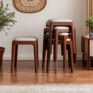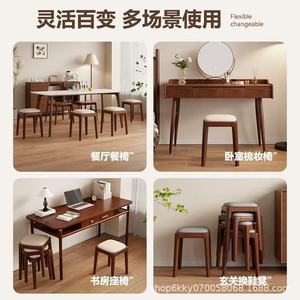 实木凳子家用可叠放软包板凳客厅木头矮凳简约现代小方凳餐桌椅子