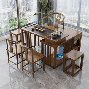 無垢材ティーテーブル回転式ティーテーブルバルコニー小型モバイル 1.12m テーブルと椅子の組み合わせラバーウッド沸騰水付き