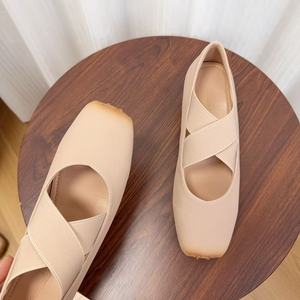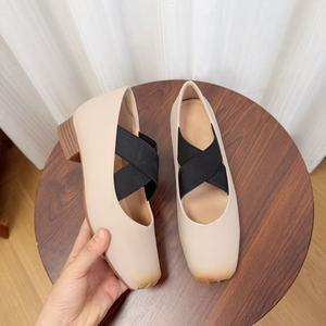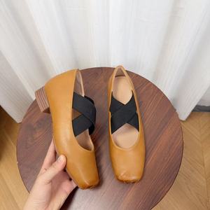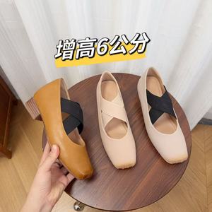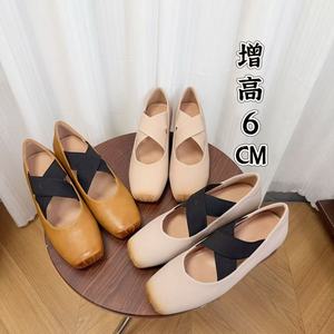 羊皮版~新款小个子内增高芭蕾舞鞋方头交叉复古玛丽珍猪鼻子鞋女