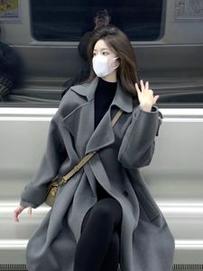 女性のためのハイエンドグレー多用途ウールコート 2025 秋と冬の新しいウールコート小柄な韓国スタイル厚みのあるトレンディな