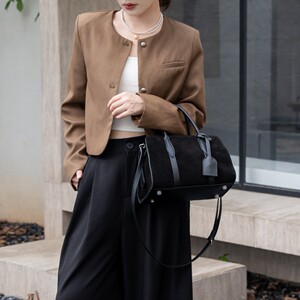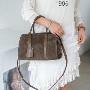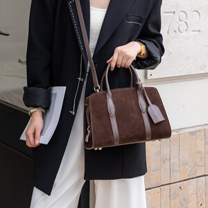 复古麂皮波士顿包牛批质感托特包电脑包大容量通勤手提单肩斜挎包
