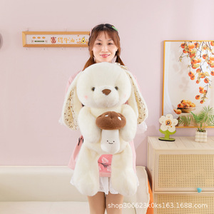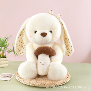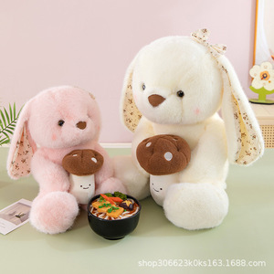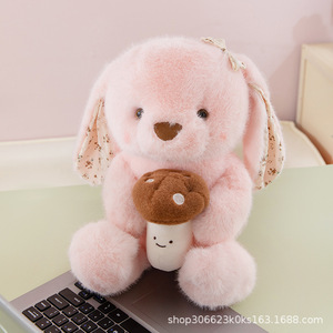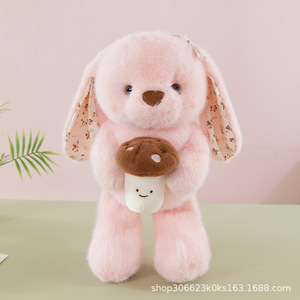 可爱蘑菇兔白色粉色碎花垂耳兔毛绒玩具公仔儿童礼物玩偶礼物批发
