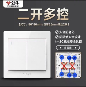 公牛开关插座G32正品一开五孔86型一开双控官方二位家用USB白暗装