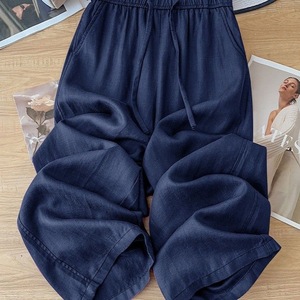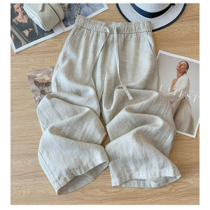 卡其色亚麻直筒裤女夏季薄款2025新款垂感宽松九分天丝棉麻阔腿