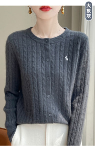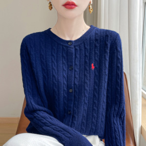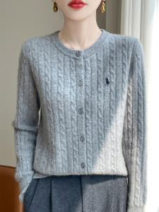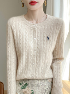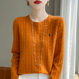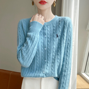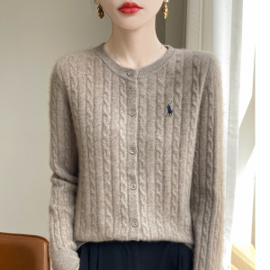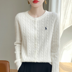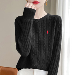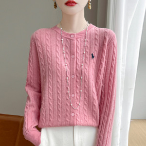 安迪绒圆领麻花开衫女时尚宽松刺绣毛衣百搭纯色设计感针织小外套