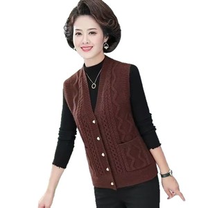 2025年马甲春秋v领针织开衫背心时尚外搭坎肩中老年纯色马夹春季
