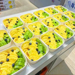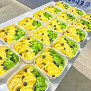 白色正方形果切盒子一次性水果带盖盒水果店加厚牛皮纸水果打包盒
