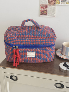 撞色格子化妆包【红色】