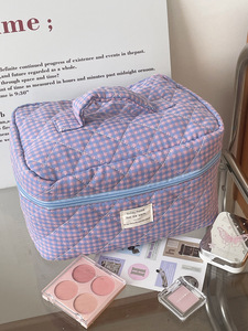 跨境撞色格子化妆包清新简约风学生时尚外出旅游便携式洗漱收纳包
