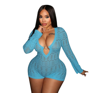 D25RP265 欧米クロスボーダー レディース 秋 中空ウール 深Vネック リングステッチ マイクロフレア 長袖 七分丈ジャンプスーツ