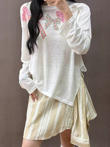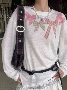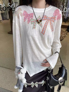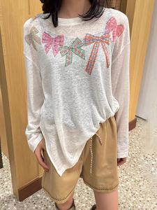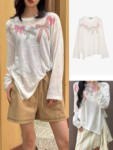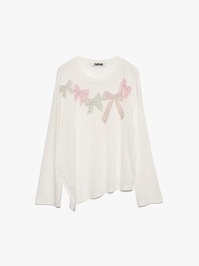 AUBオリジナルデザイン2025秋冬新作非対称裾デザインヘビーリボン長袖Tシャツ