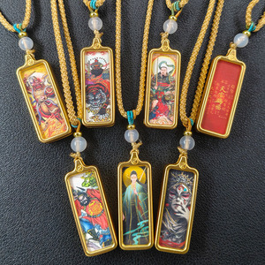道家八卦款合金电镀1*3小唐卡吊坠天官赐福卡 白鹤童子赵公明挂坠