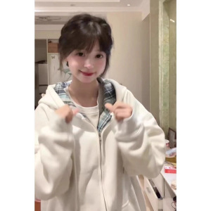 2025秋季新款学院风休闲百搭宽松薄款刺绣连帽卫衣外套