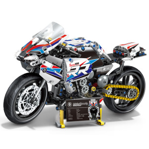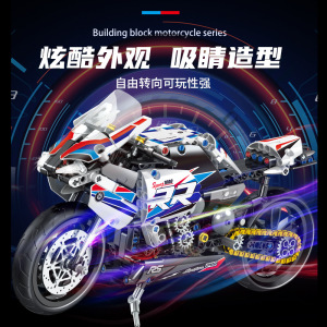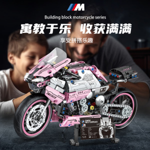 跨境梦幻粉色摩托车积木玩具拼装机车模型机械组益智男孩赛博朋克
