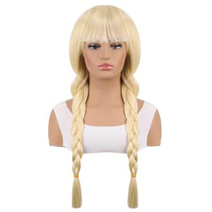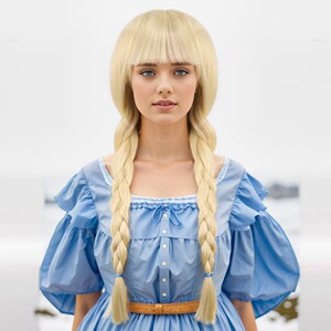 欧美假发万圣节复活节齐刘海双马尾米白色高温丝全头套假发现货新