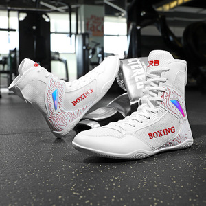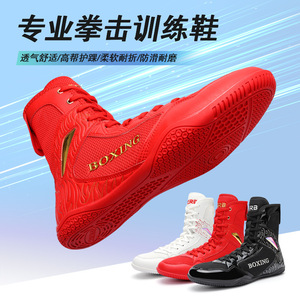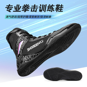 男性と女性のためのボクシングシューズ、ハイトップファイティングサンダーシューズ、屋内フィットネストレーニングレスリングシューズ、プロフェッショナルフリーファイトシューズ