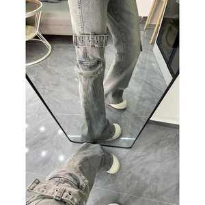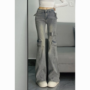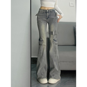 美式复古重工拼接设计感微喇牛仔裤女2025春季新款修身显瘦马蹄裤