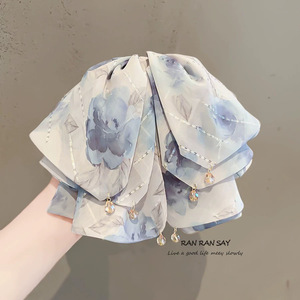 法式玫瑰花蝴蝶结飘带抓夹女新款发夹气质马尾夹后脑勺时尚鲨鱼夹