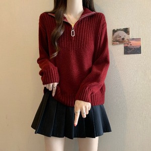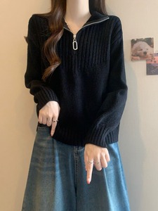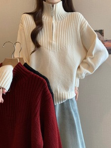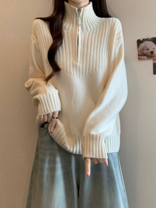半拉链翻领内搭毛衣女秋冬2025大码胖mm宽松坑条慵懒风针织衫上衣