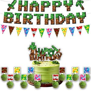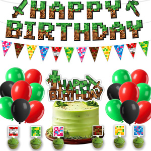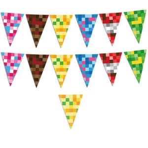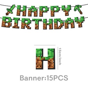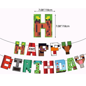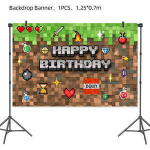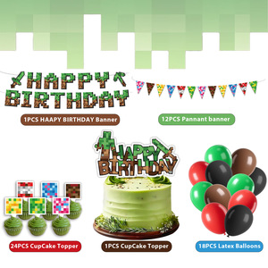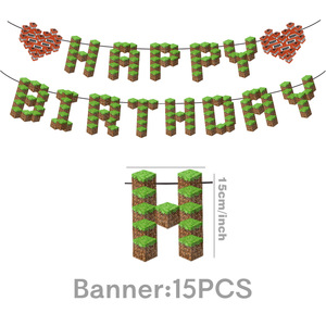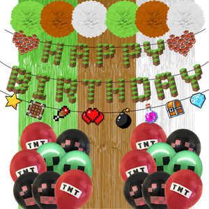 卡通我的世界像素主题派对装饰拉旗套装儿童聚会生日布置横幅气球