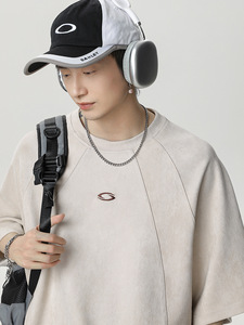 アメリカンレトロスエード半袖Tシャツメンズ25夏新作立体分割デザイン半袖Tシャツ