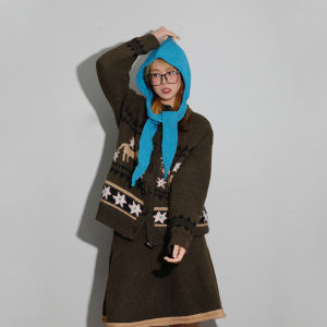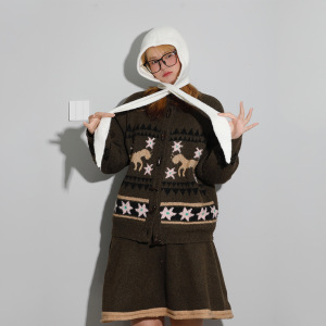 高級ニットバラクラバ、レースアップ暖かい耳保護ウール帽子、秋冬ネックプロテクションフード付きスカーフ