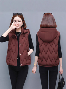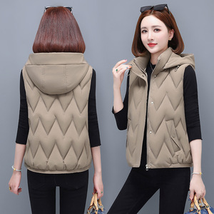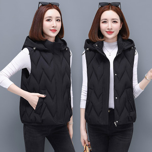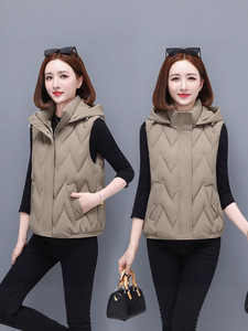 女性用コットンベスト、秋冬ショートライブキャップサーマルベスト、小柄な人向けの新しいノースリーブコットンジャケット、無地の多用途コットンベスト