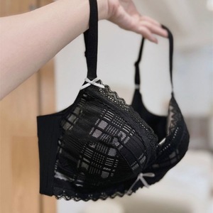 新款内衣女小胸薄款纯欲钢圈小胸下垂调整型蕾丝透气文胸套装聚拢