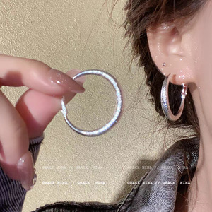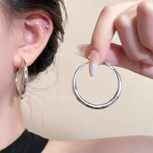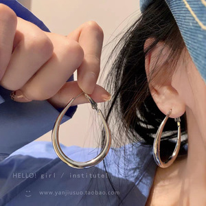方圆脸水滴素圈耳环轻奢高级感耳圈冷淡风夸张耳饰小众设计感耳钉