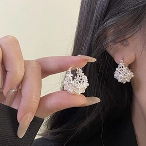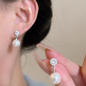 26#银色丝带蝴蝶结珍珠耳钉-两戴款