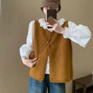 2025 初秋の新スタイル怠惰なスタイルシンプルなレイヤードセーターベストジャケット女性のルーズで多用途なノースリーブニットベスト