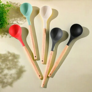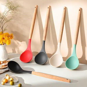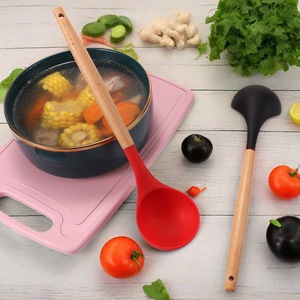 实木柄防烫硅胶汤勺耐高温家用加深舀粥勺食不粘锅日用餐厨盛厨具